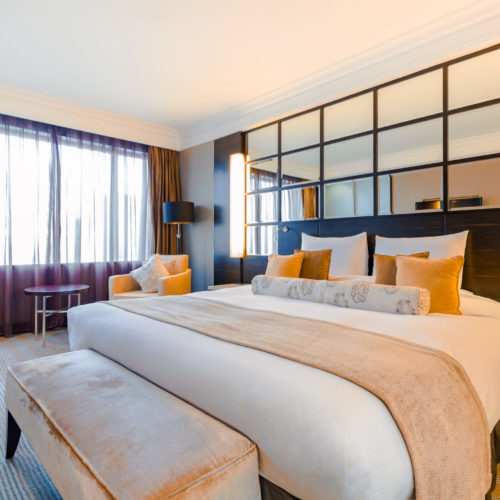 花园各式套房拥有舒适大床,配以色泽高雅、温馨舒适的床上用品,让您忘却一天的劳顿,拥有充实的梦乡。盥洗室干湿分离,选用国际品牌的洗浴用品,助您舒缓身心。精致家具营造出宁静舒适的氛围。